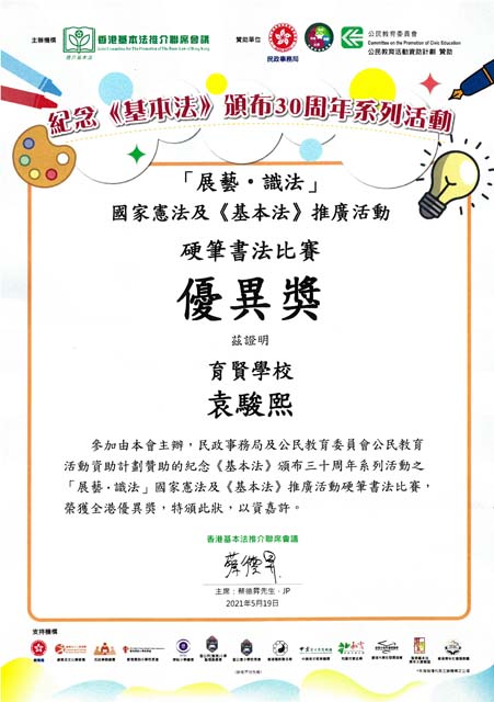 「展藝.識法」國家憲法及《基本法》硬筆書法比賽