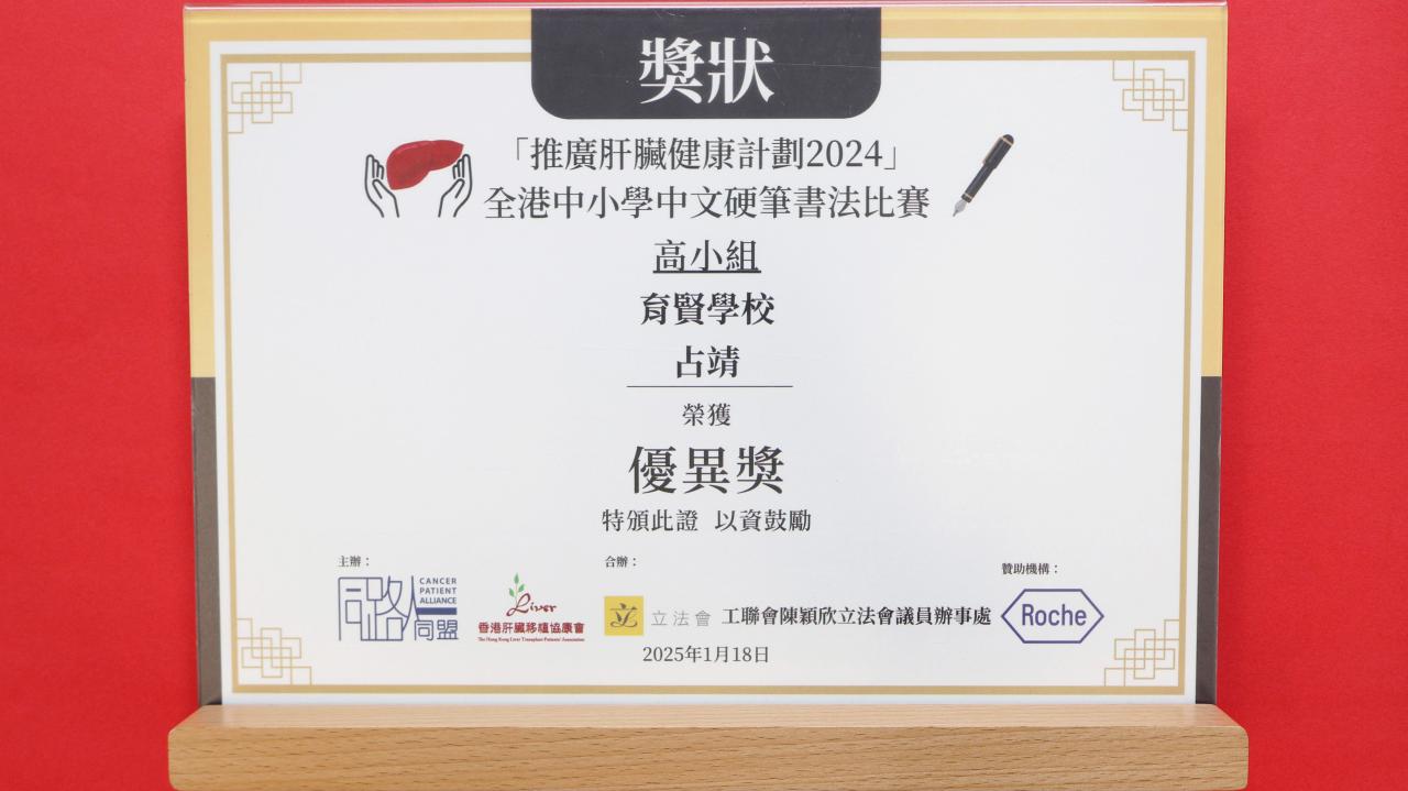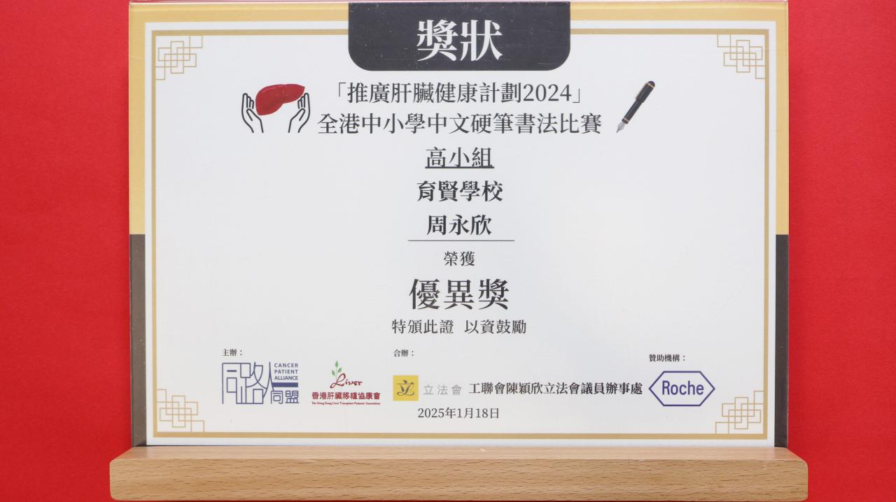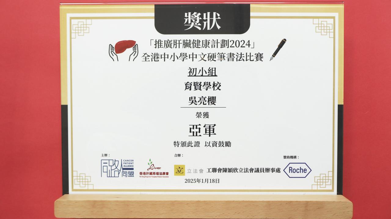「推廣肝臟健康計劃2024」全港中小學中文硬筆書法比賽