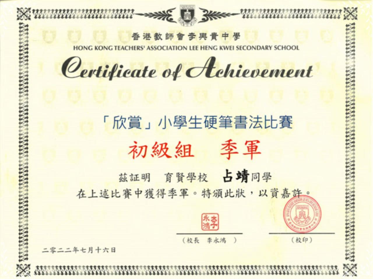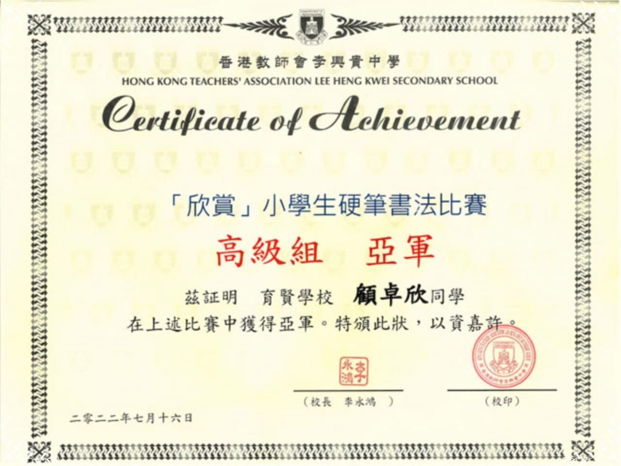 「欣賞」小學生硬筆書法比賽