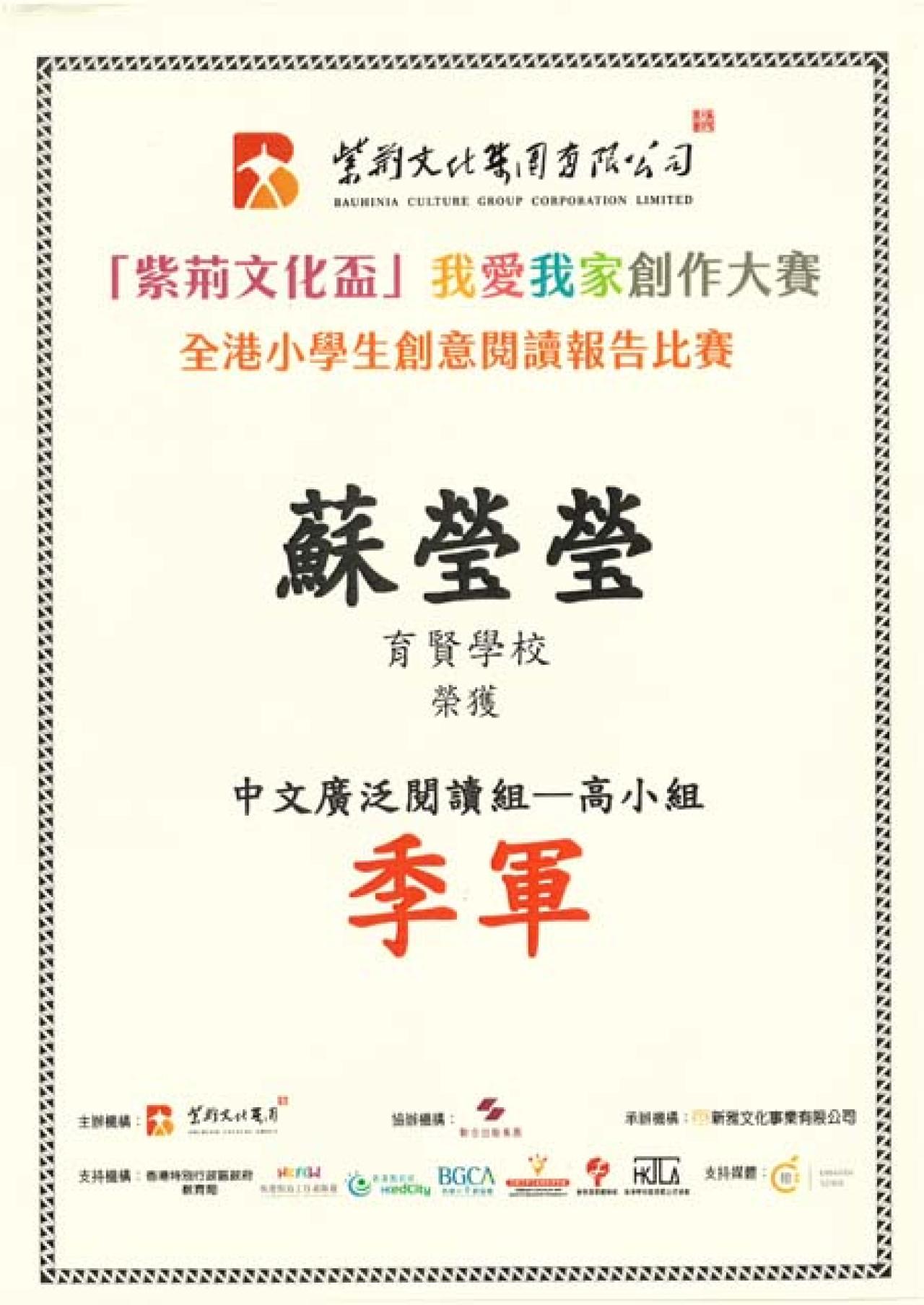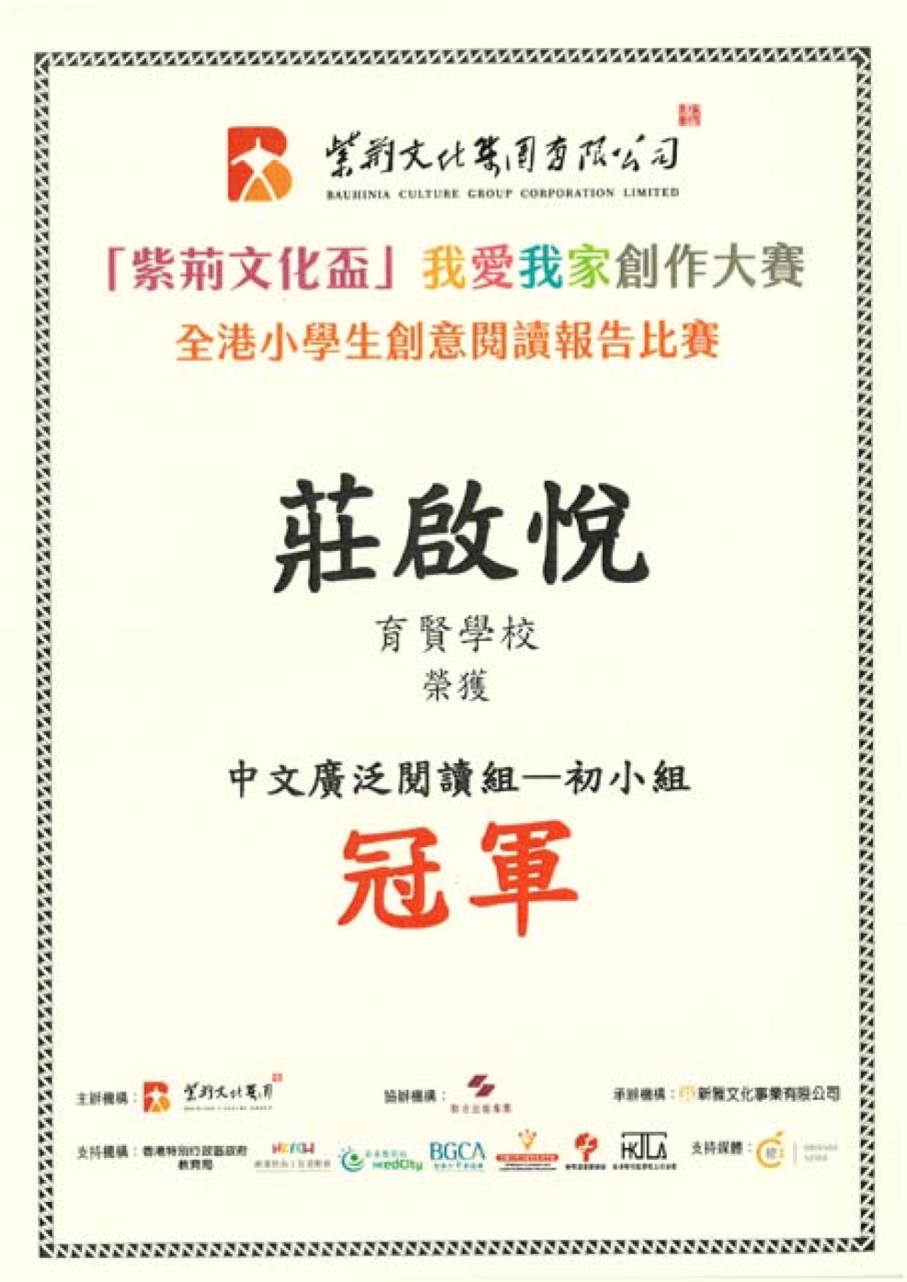 「紫荊文化盃」我愛我家創作大賽之全港小學生創意閱讀報告比賽
