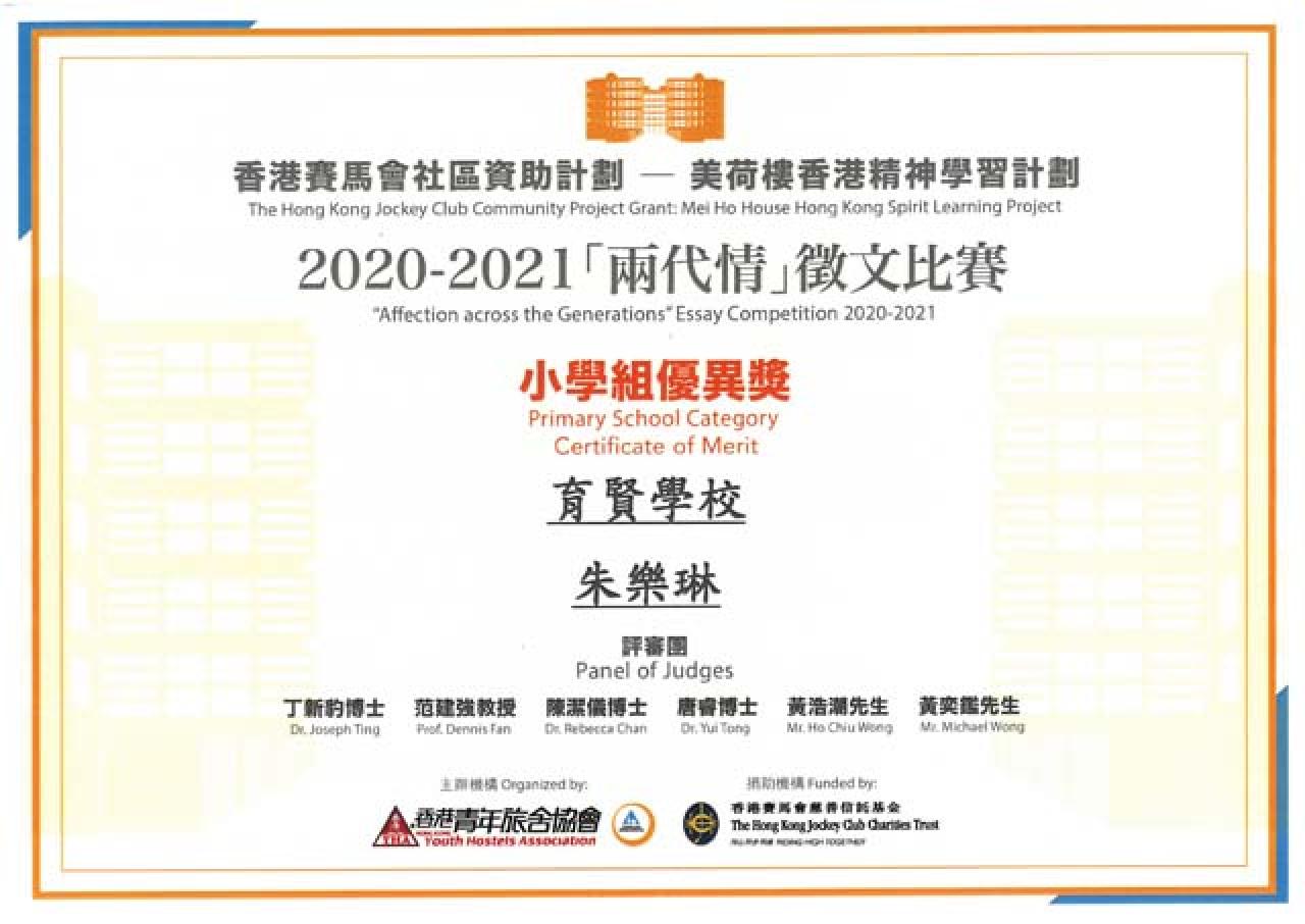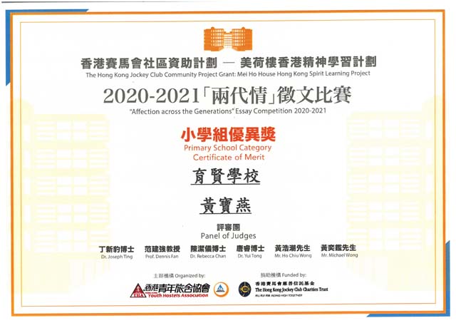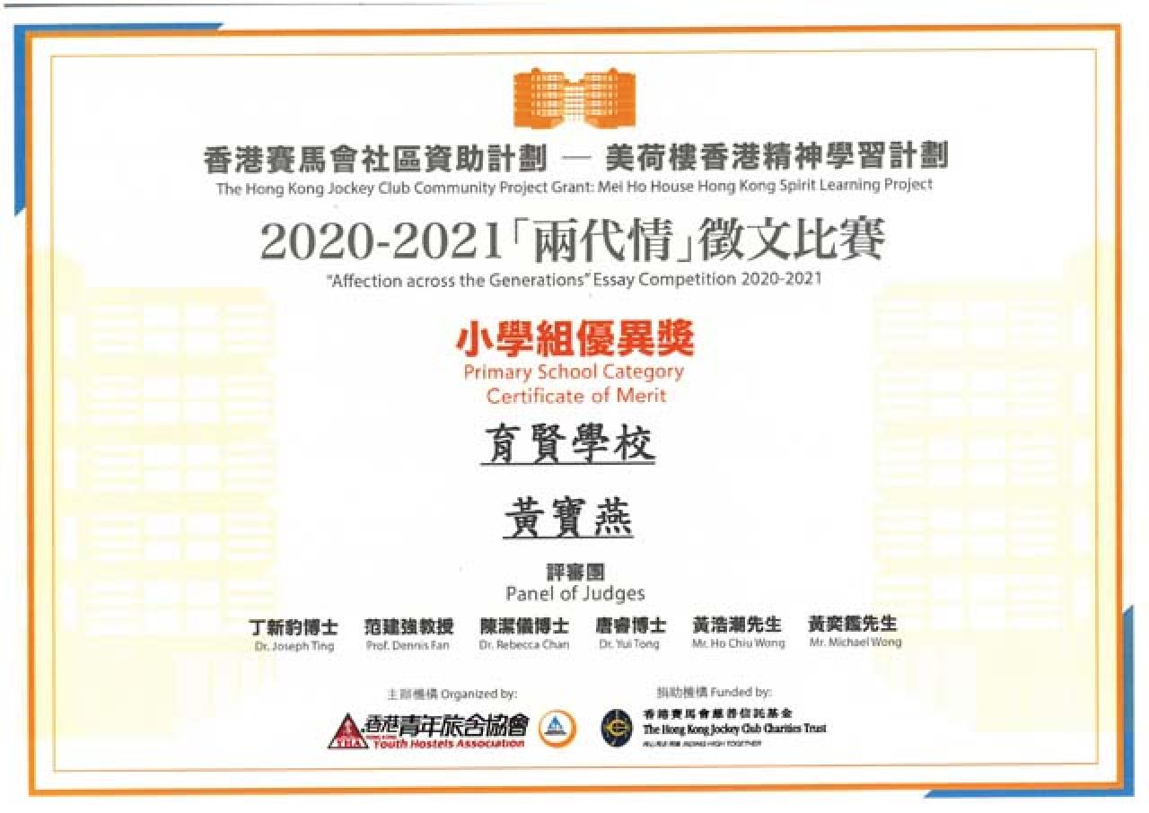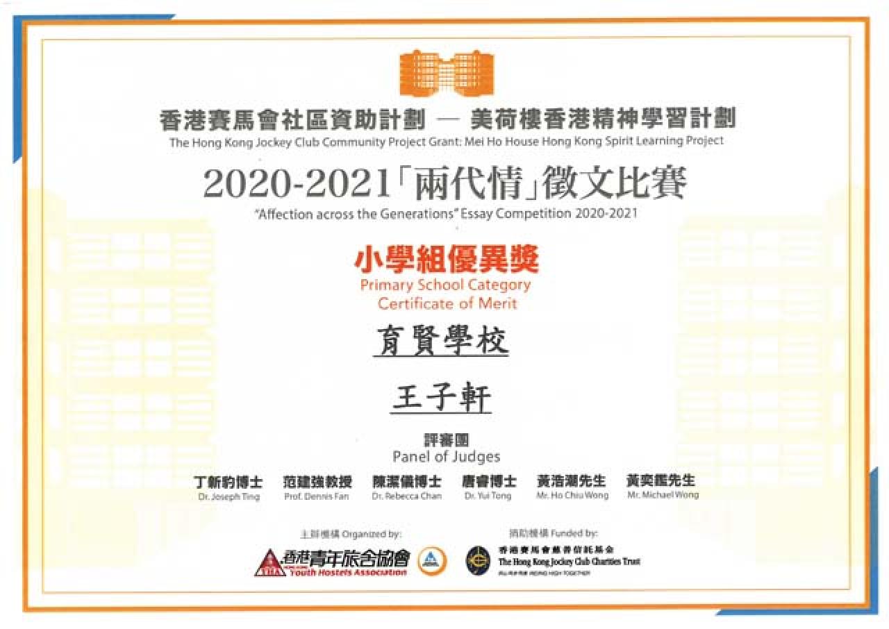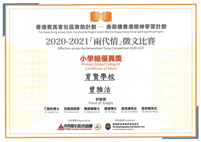 「香港賽馬會社區資助計劃 - 美荷樓香港精神學習計劃」徵文比賽
