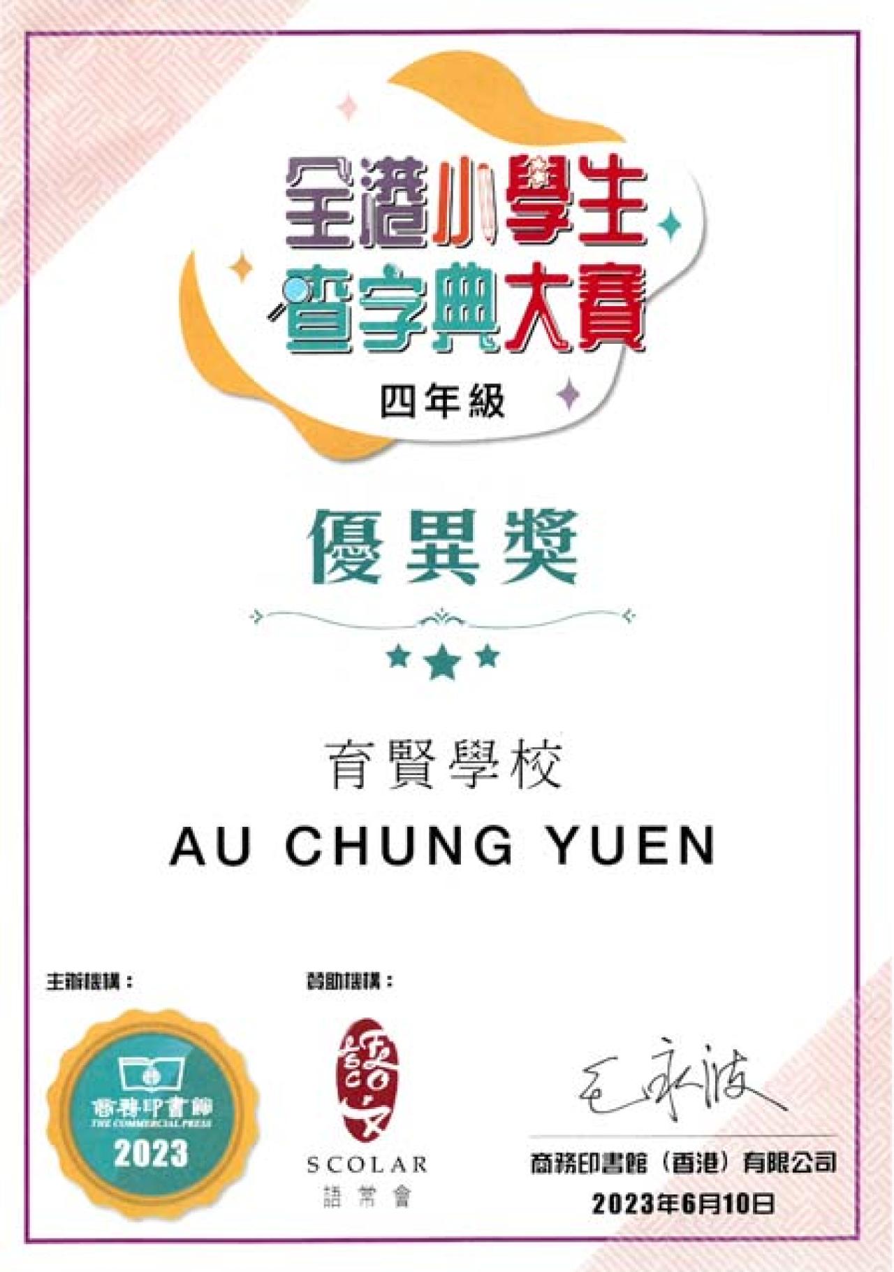 四年級 優異獎