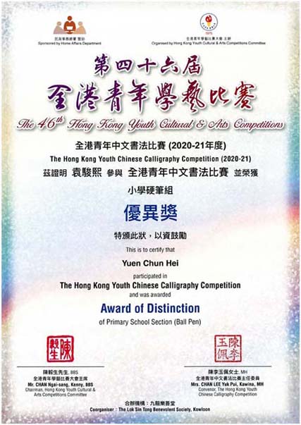 全港青年中文書法比賽2020-21