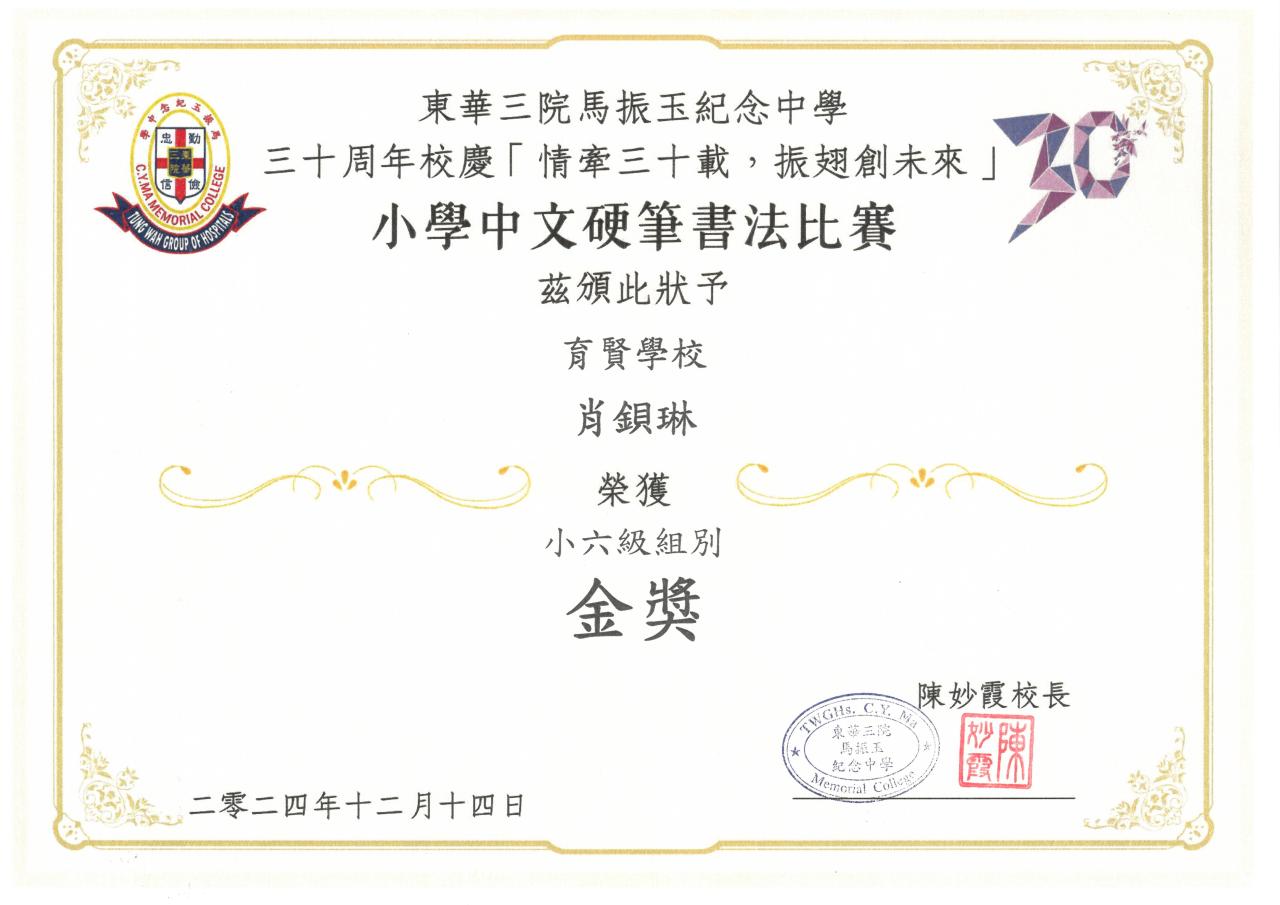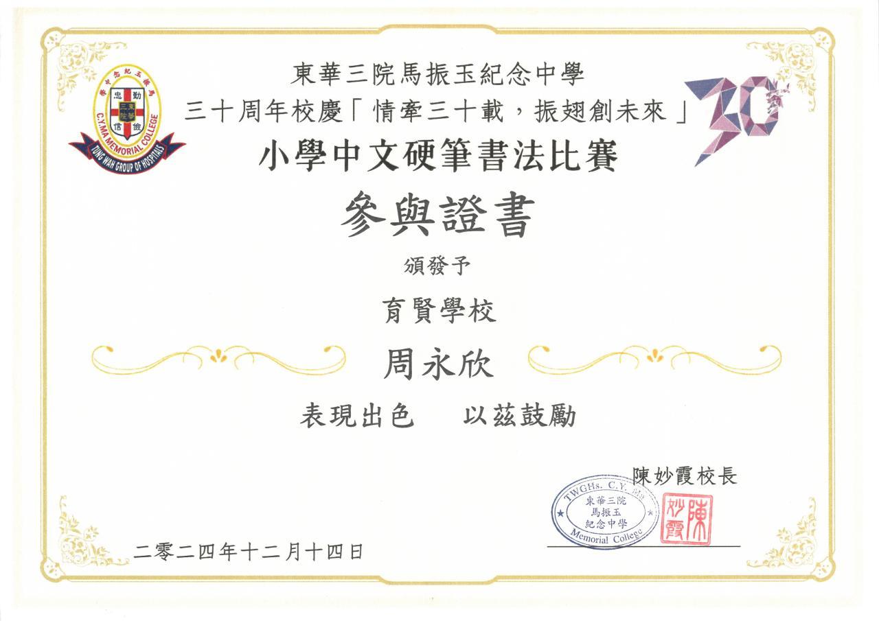 東華三院馬振玉紀念中學三十周年校慶小學中文硬筆書法比賽