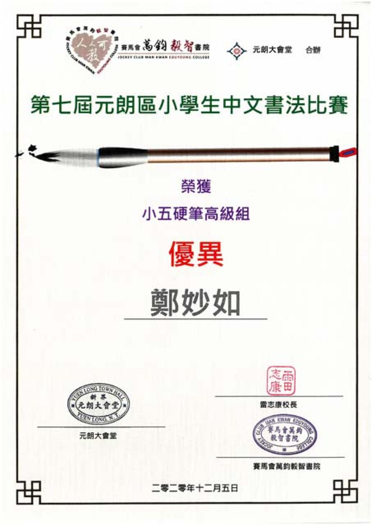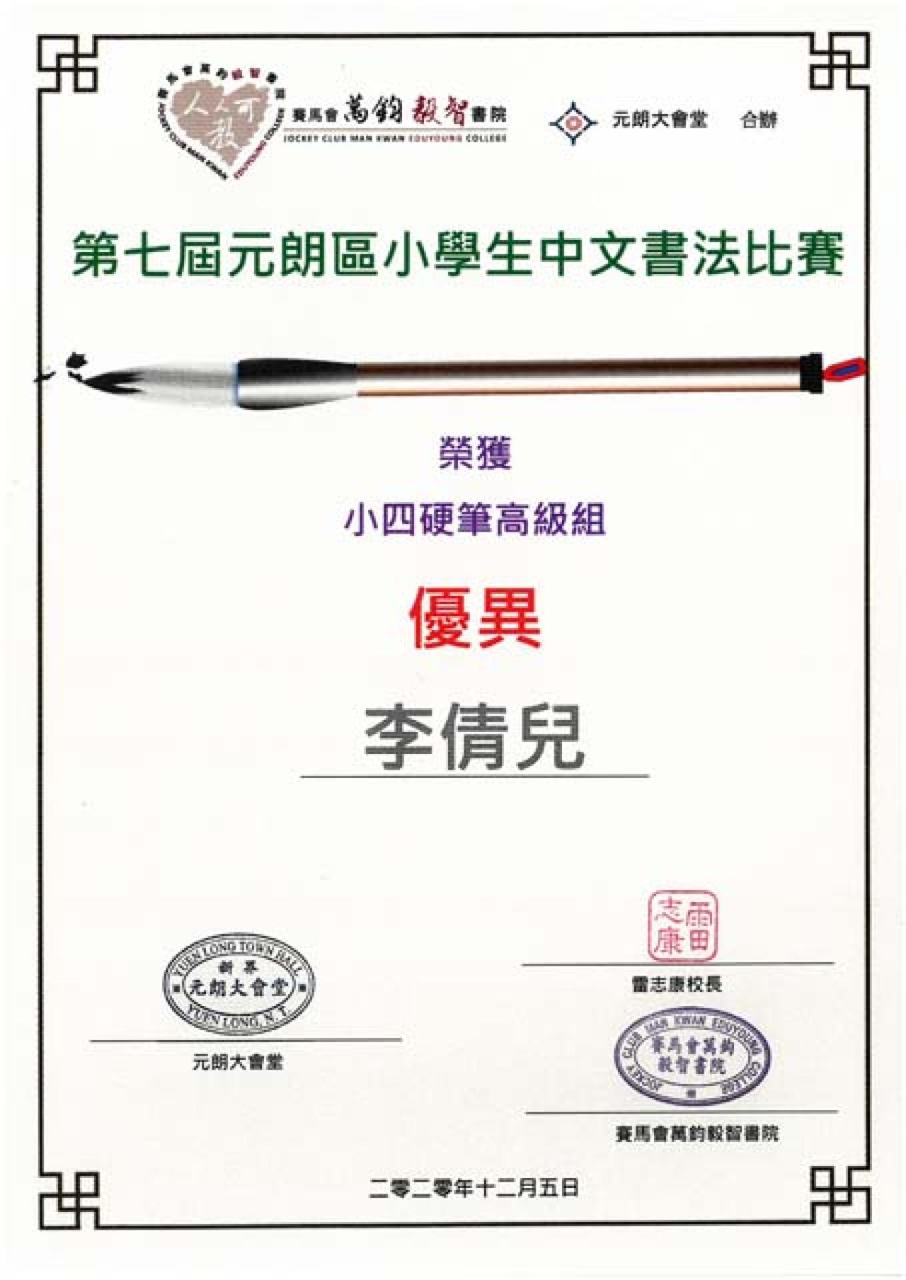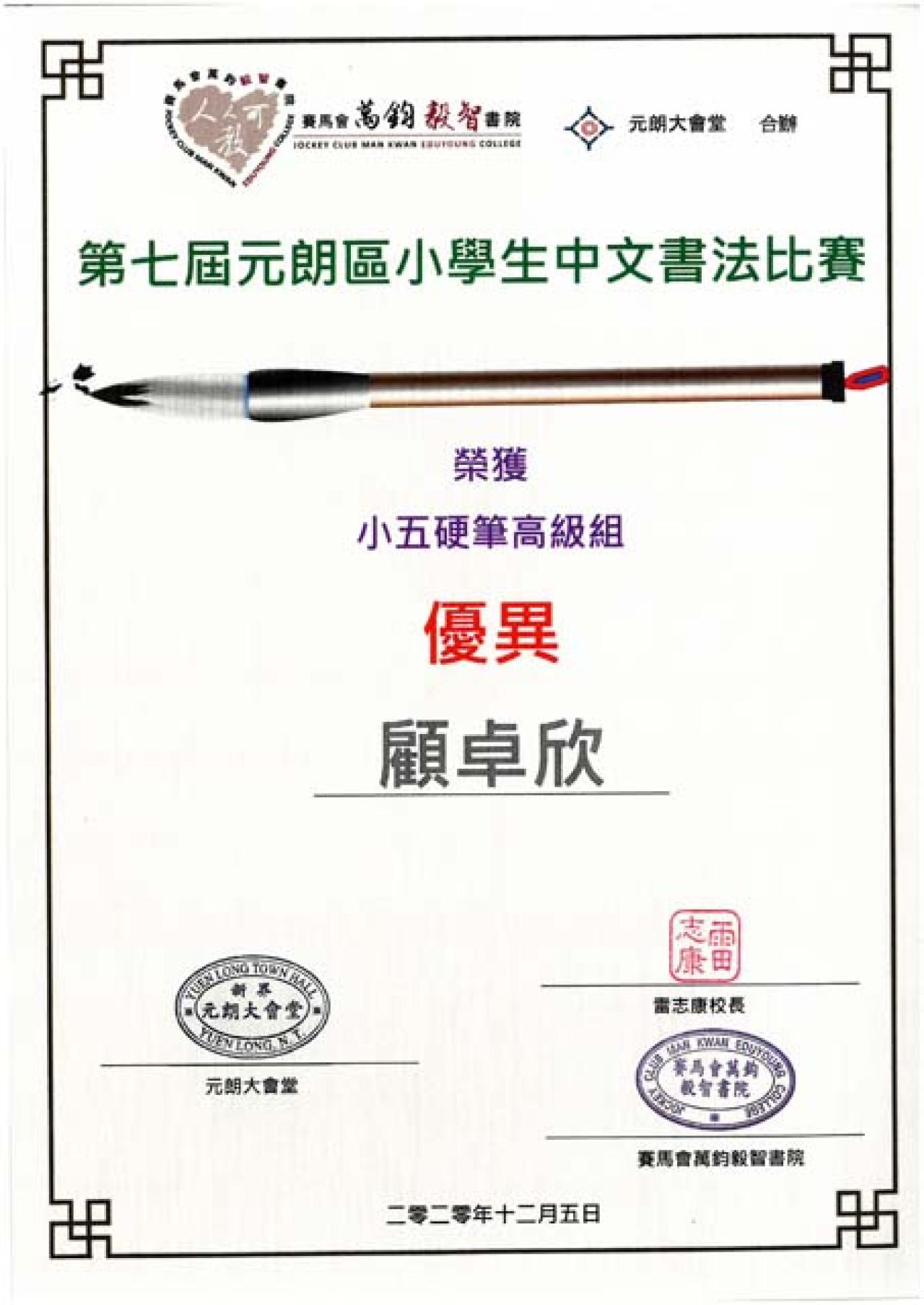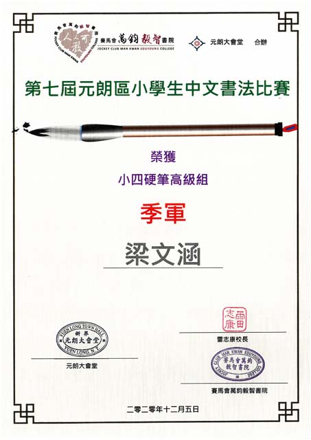 第七屆元朗區小學生中文書法比賽