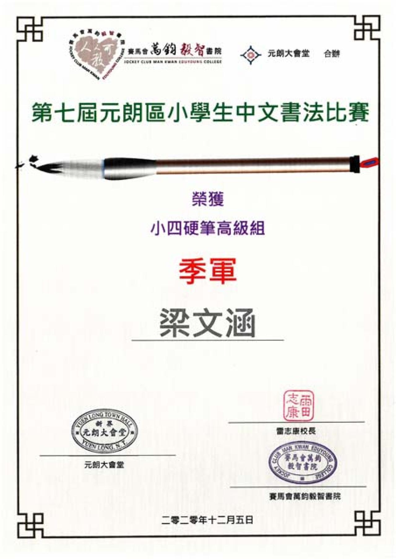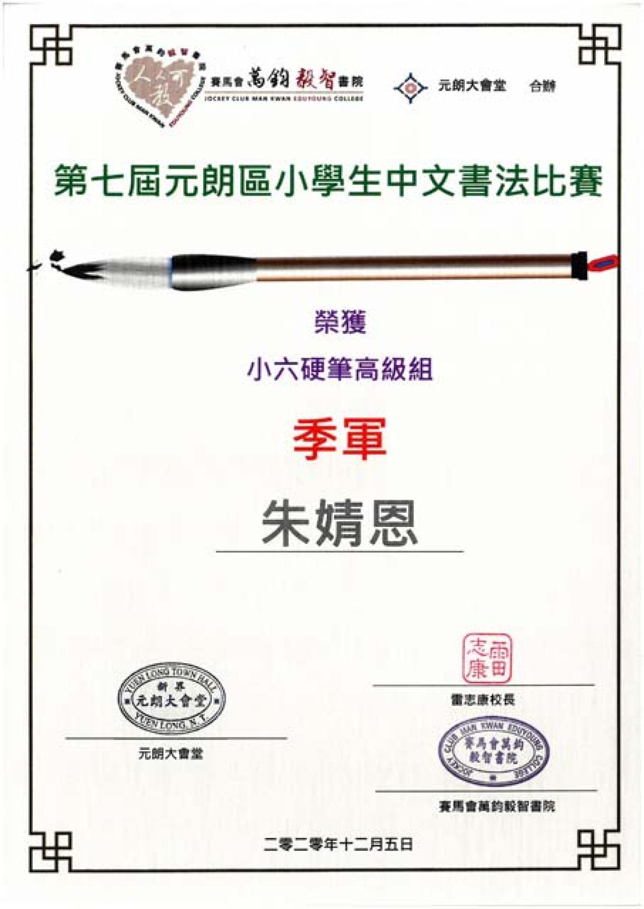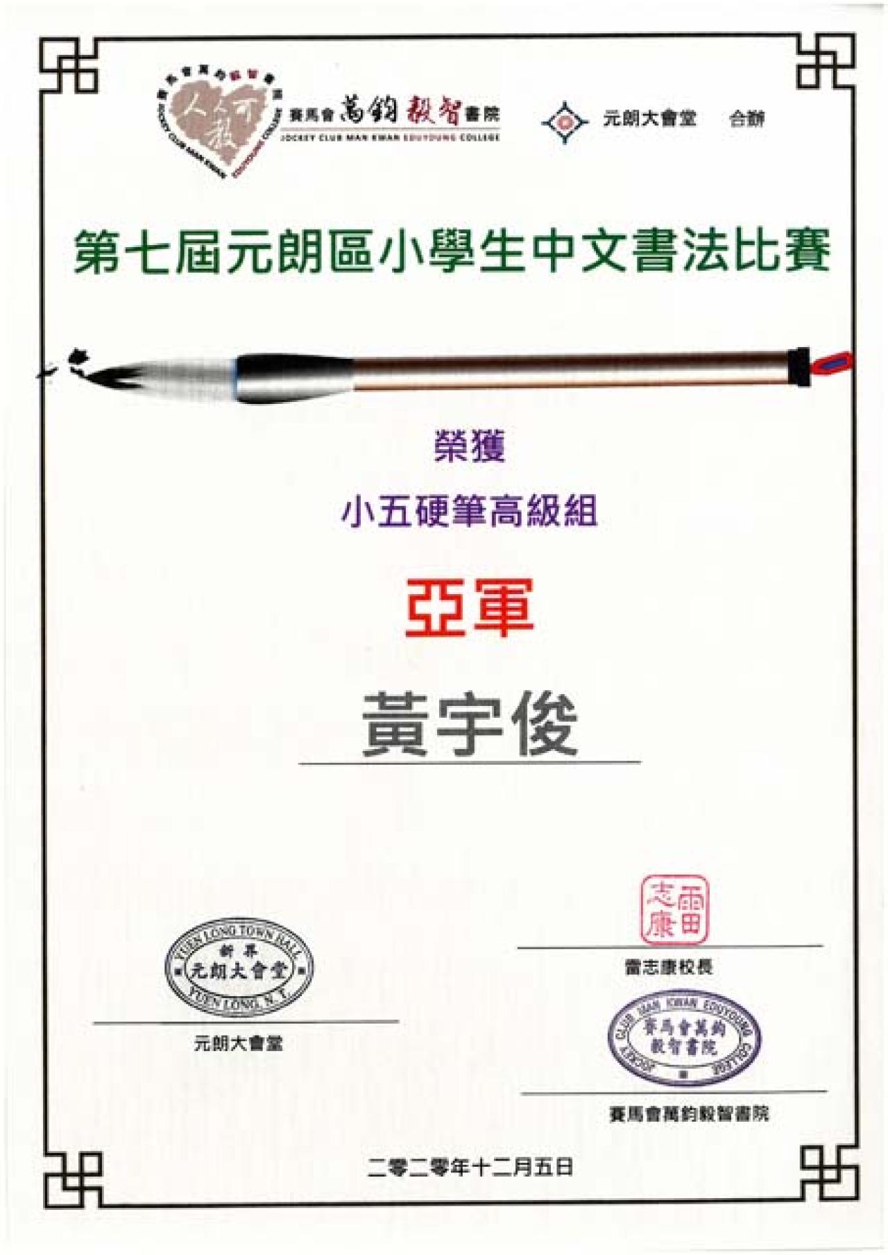 第七屆元朗區小學生中文書法比賽