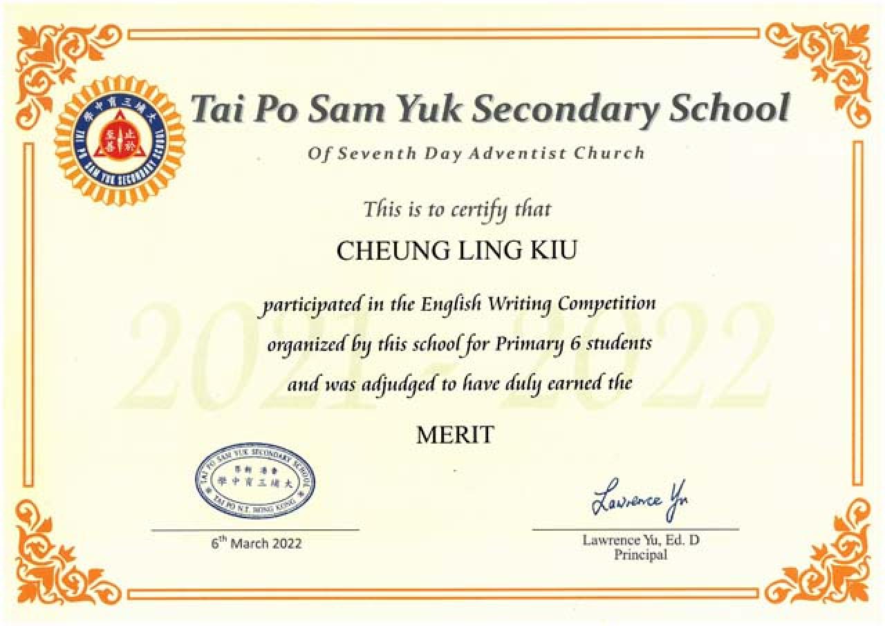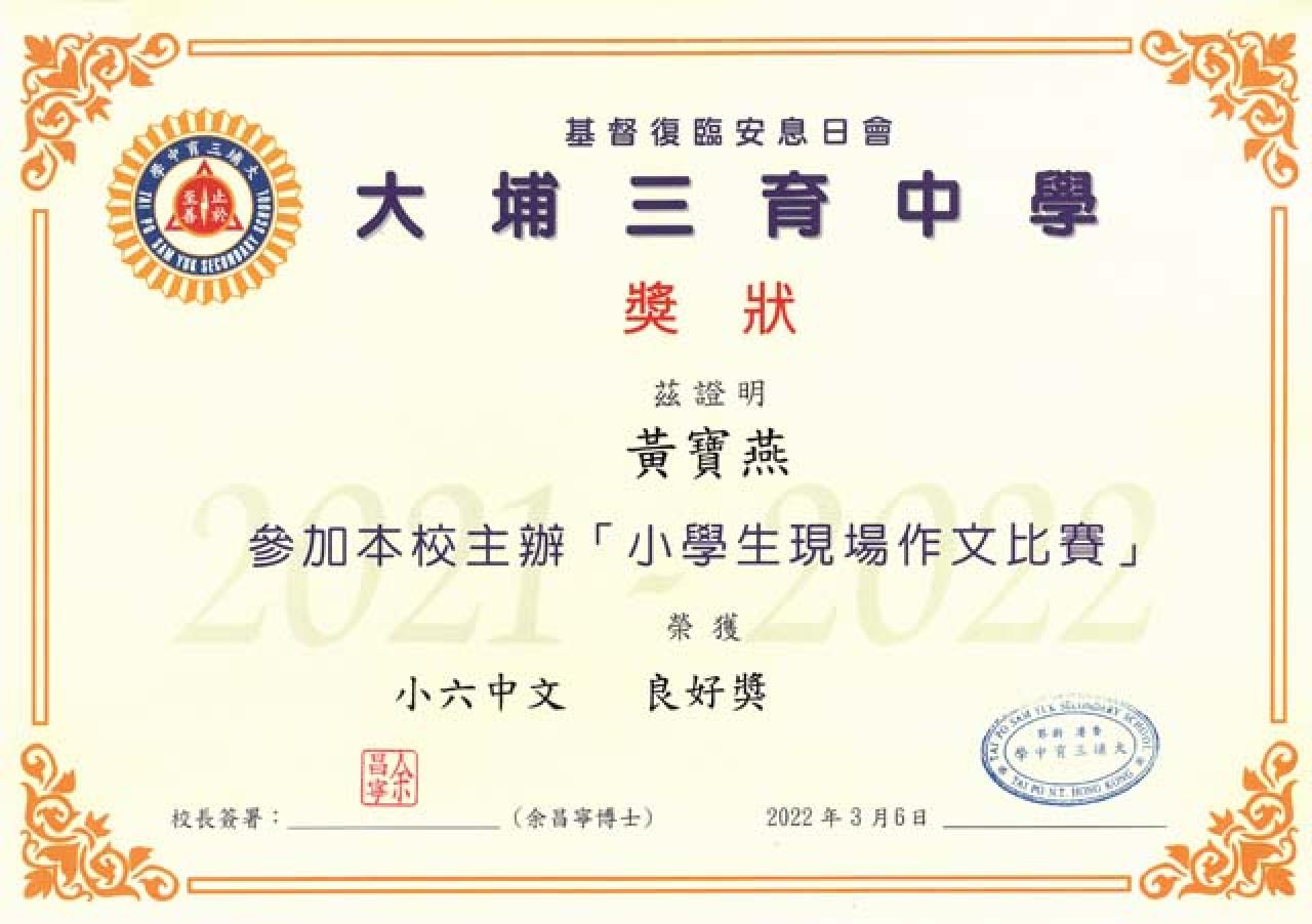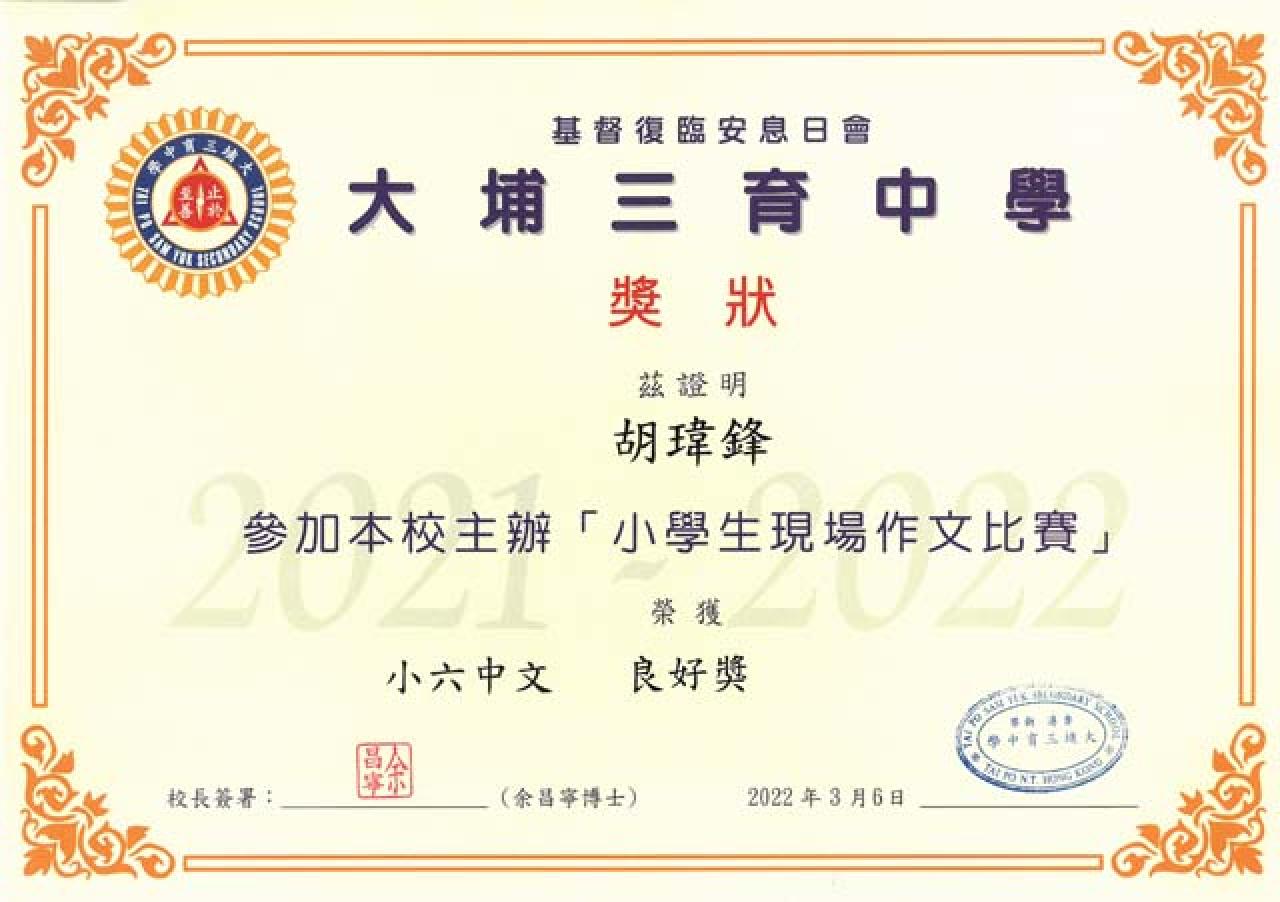 小六中文 良好獎