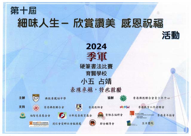 第十屆「細味人生——欣賞讚美、感恩祝福」活動硬筆書法決賽