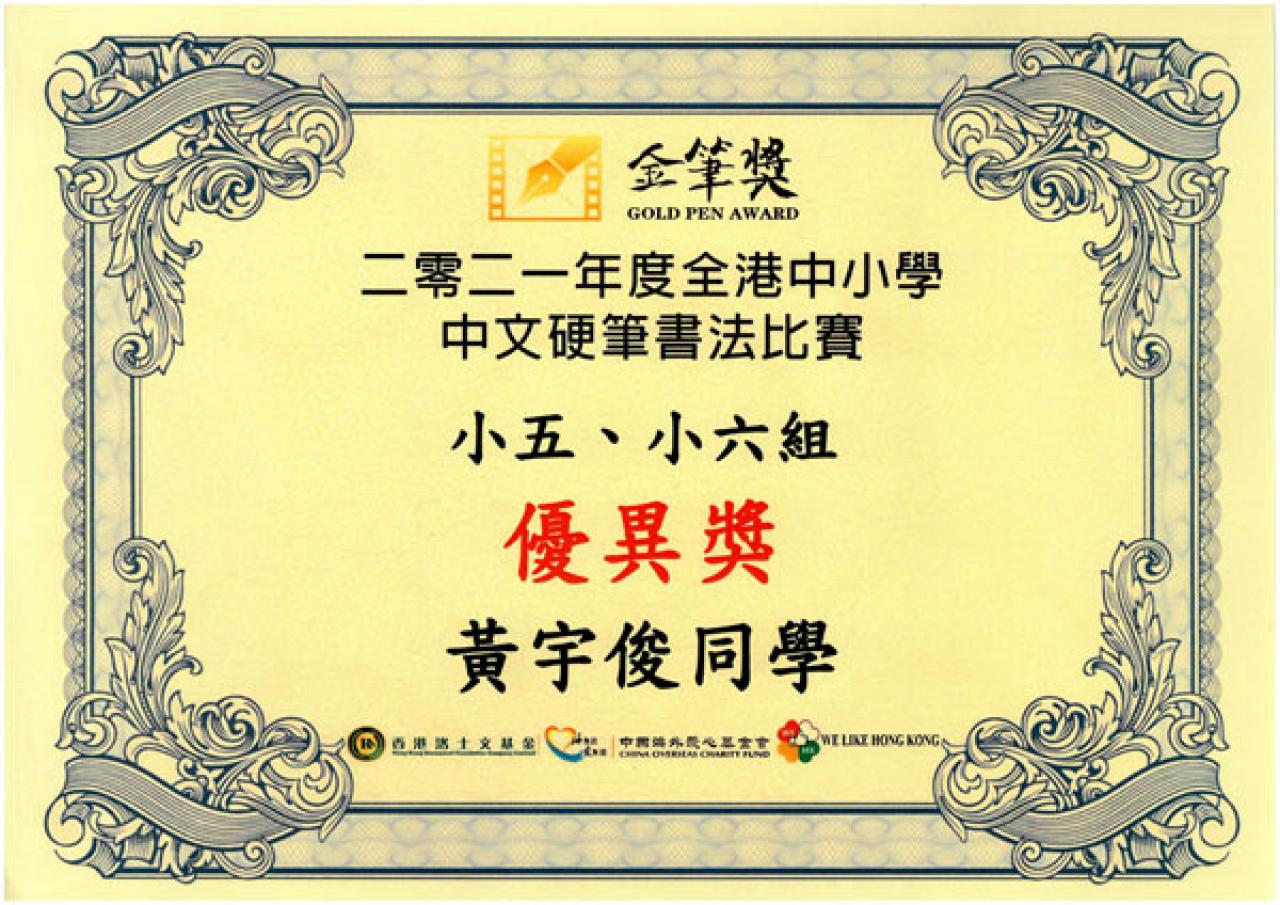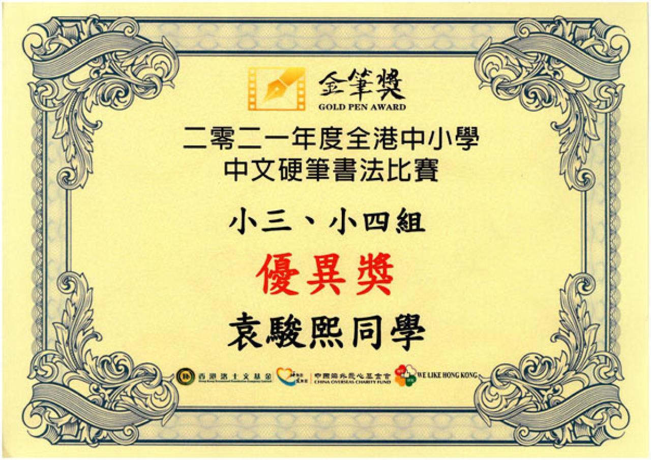 金筆獎—2021全港中小學中文硬筆書法比賽