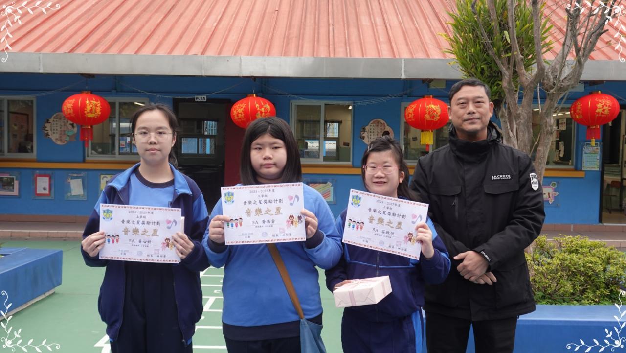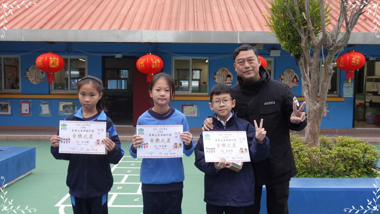2025-01-14 音樂之星1A林詩喬葉承一黎芷瑤2A胡 朗蘇嘉瀅周梓涵3A范嘉俊管弦樂吳亮櫻4AHO KAH HUAN李正坤蕭靜遙5A莊啟悅黃心妍黃浩睿6A徐曉瀅吳慕青占 瑩6B陳逸函羅冰冰胡恩琋 校內獎項