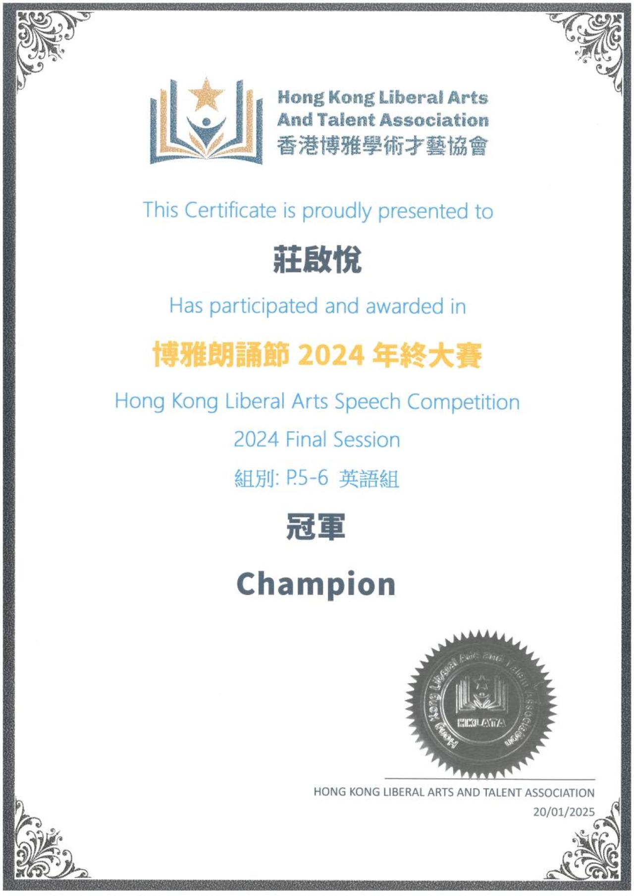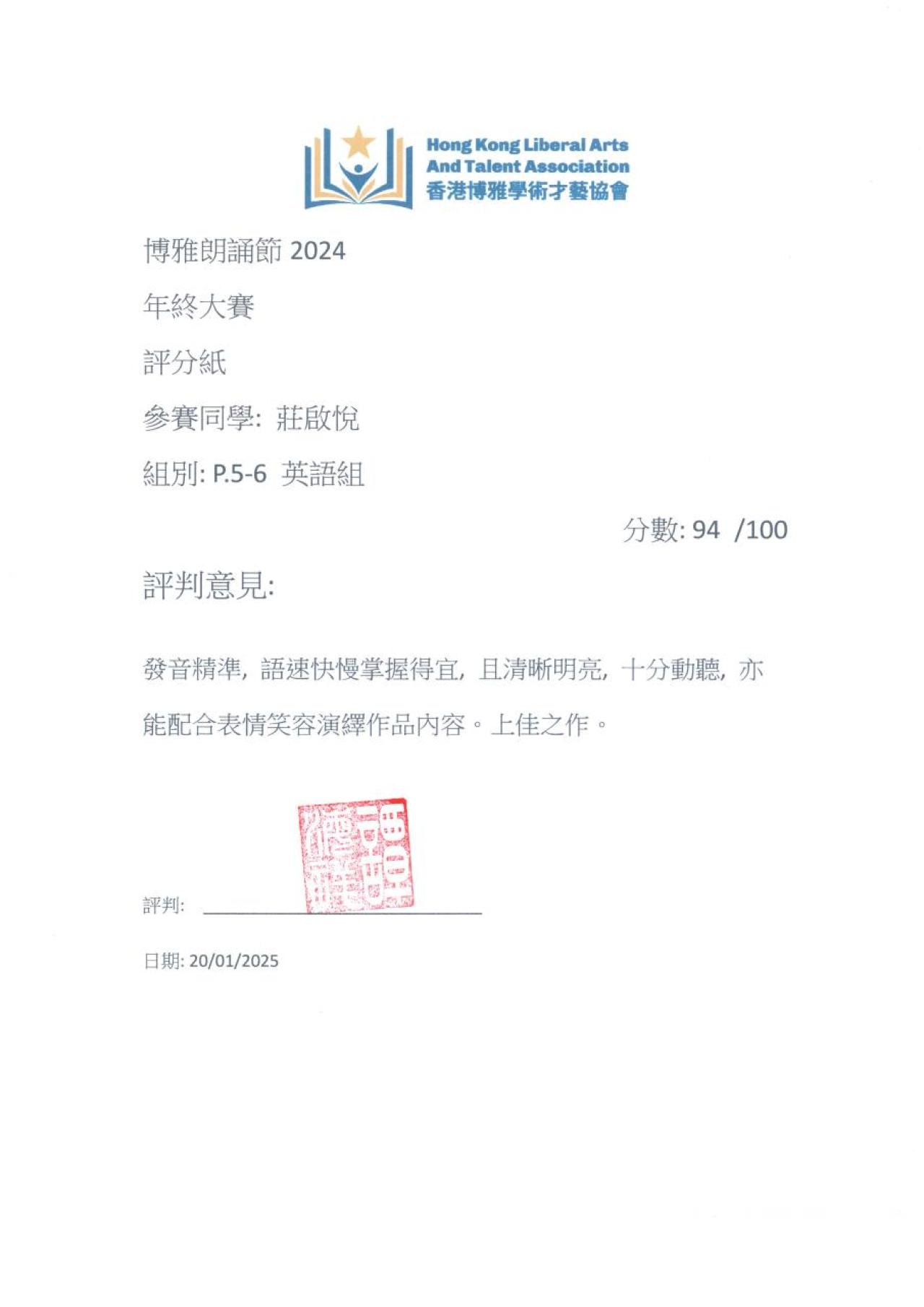 香港博雅學術才藝協會 博雅朗誦節2024年終大賽