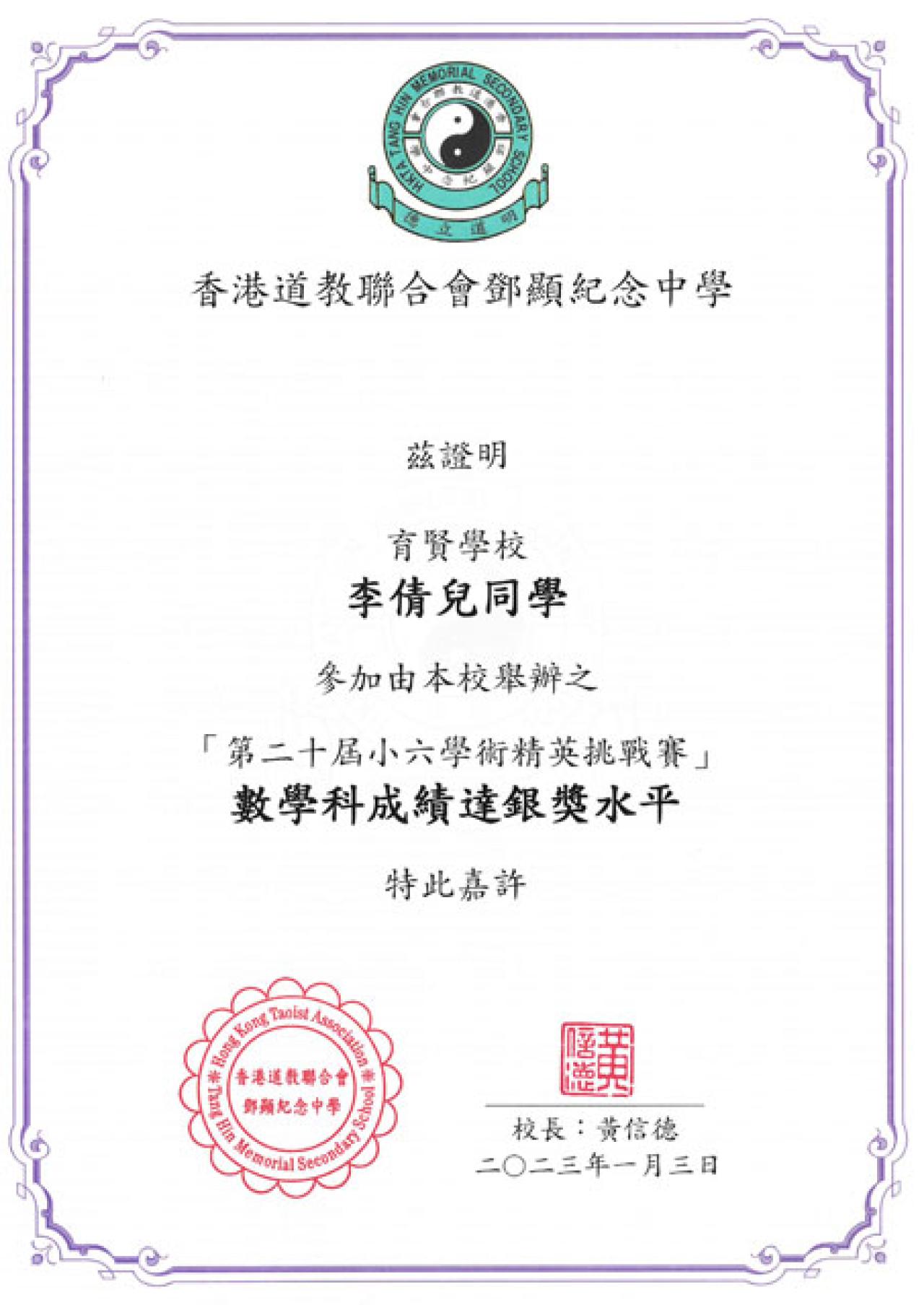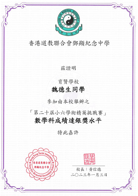 香港道教聯合會鄧顯紀念中學「第二十屆小六學術精英大挑戰賽」