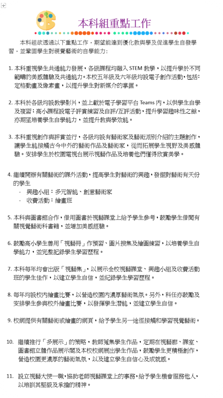各科組教學政策